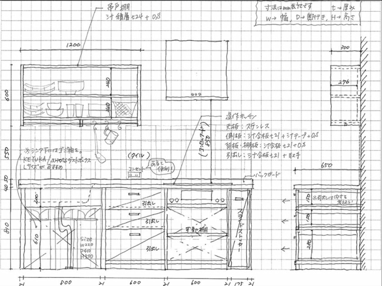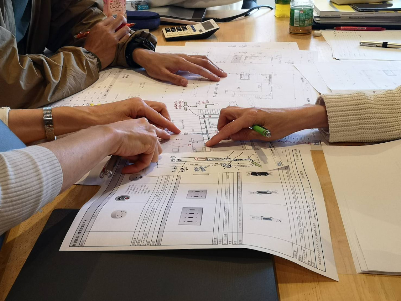 図面を元に仕上がりについて改めて入念にチェックしていく。骨が折れる作業かと思いきや、暮らしと直結するこの作業。実に面白い。