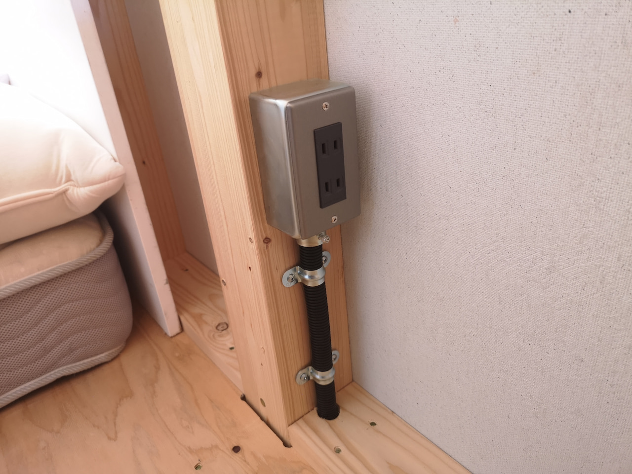 もちろん壁も天井も床も、骨組みあらわしのままの予定。そうなると当然電気の配線、配管も剥き出しのまま。