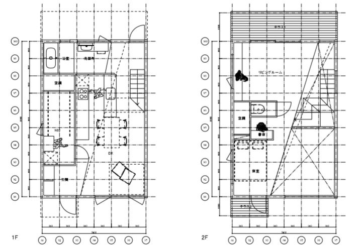 まずは、家族が溜まる中心が1階なのか?2階なのか?で間取りは大きく変わってきます。Iご夫婦は、「客を気にせず呼べて、適当に溜まることができる空間が1階に欲しい」ということで、おのずとLDKが1階になりました。2階はプライベートな寝室と、客間にも使えるサブリビングスペース。バルコニーでお酒を飲んだり、食事を楽しむことも考えて、サブリビングから外へ出られるように出来たら良いね、ということでバルコニー側に配置。
