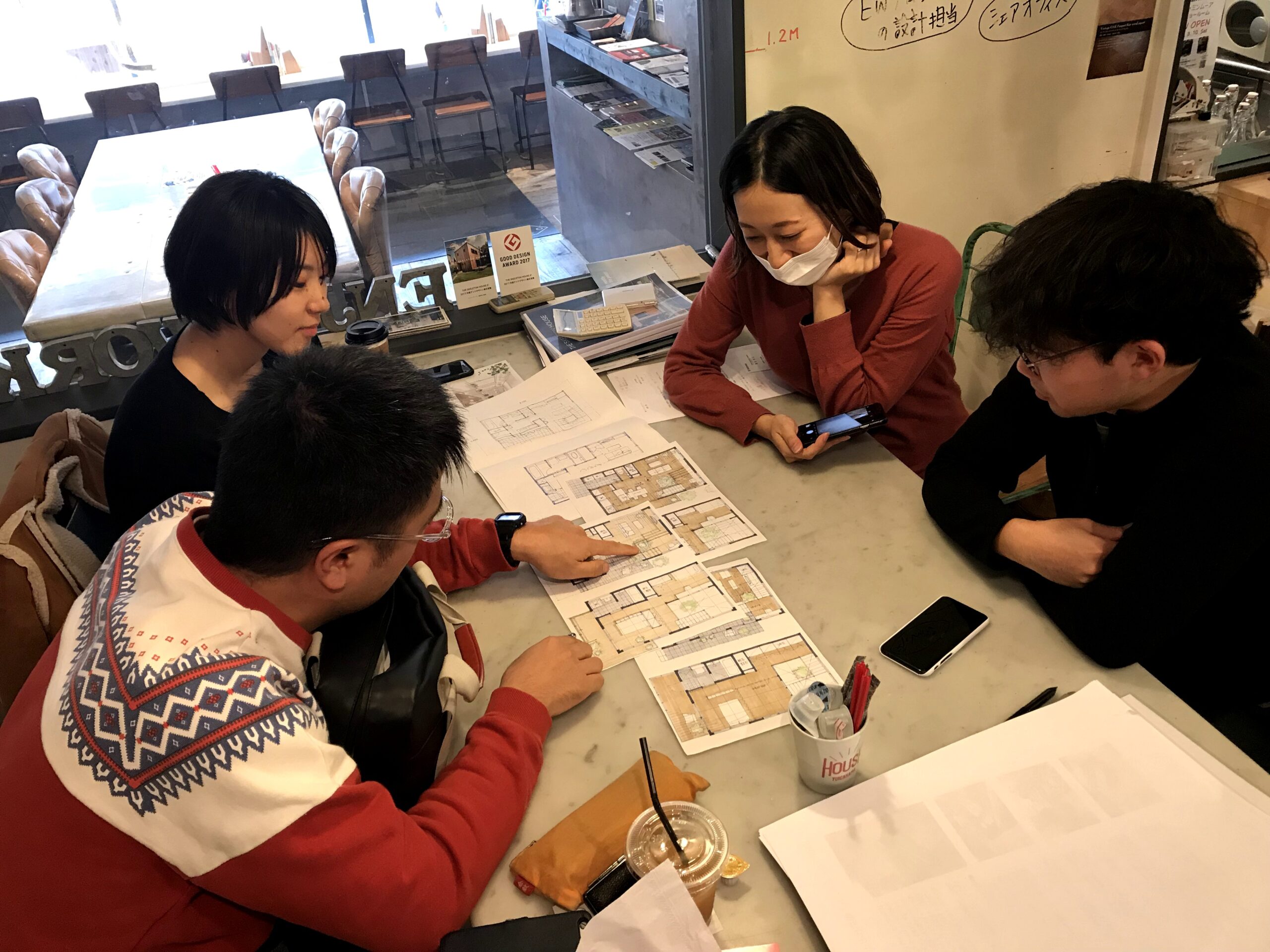 間取りとか、窓の位置・大きさとか、仕上げの素材とか。見積もり調整も。
