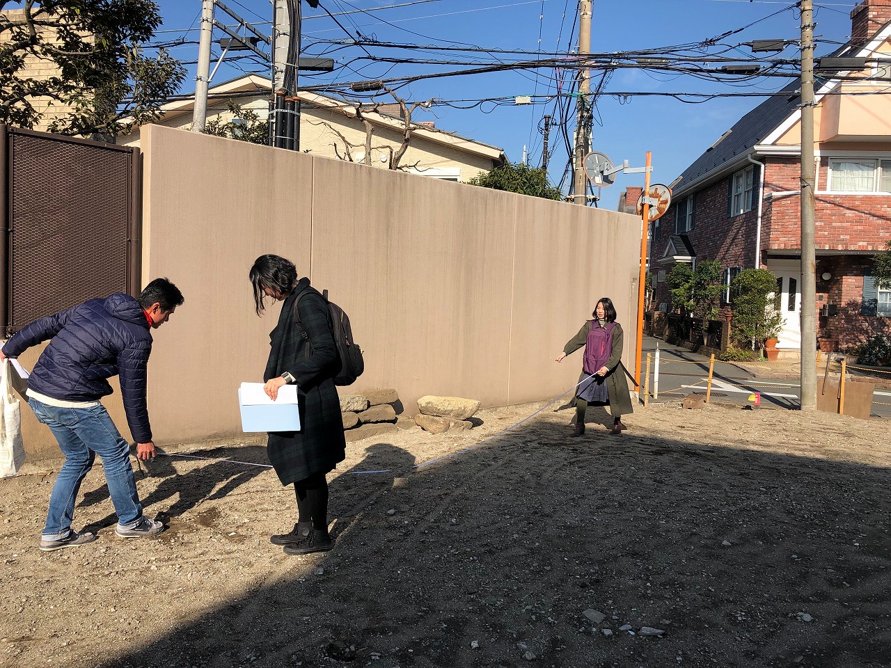 先日はみんなで解体後の現場に行って、実際に建物の位置を確認したり、