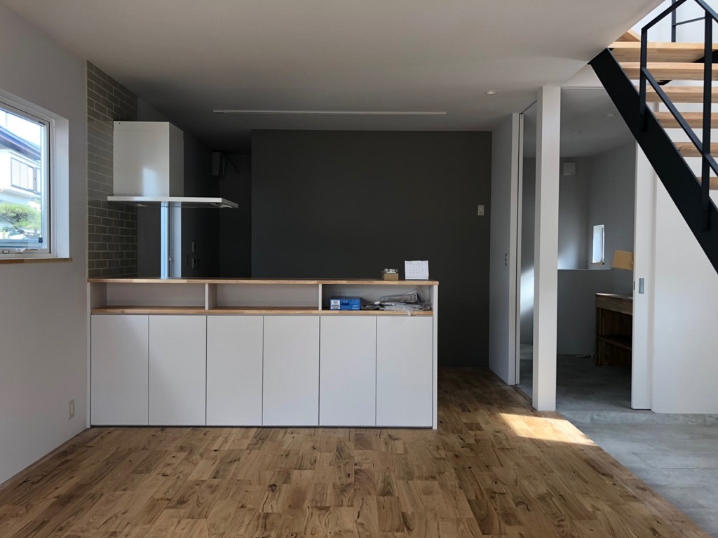 今回のプランでは玄関入ってすぐにLDKなのでキッチンカウンターの見せ方にも力を入れ、計画しました。現場監督さんと現場で図面を見ながらいろいろアドバイスをいただき、私自身とても勉強になりました。仕上りが楽しみです!