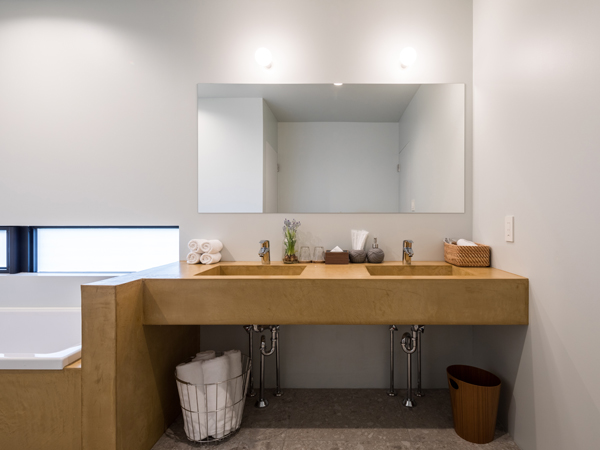このThe Canvasは、一戸建てと同様のつくりではありますが、住居ではなく宿泊施設。「非日常感」をそこはかとなく感じさせ、泊まる人のセンスをさりげなくひとつ持ち上げるような空間づくりをしています。