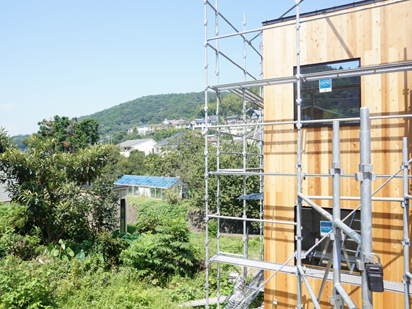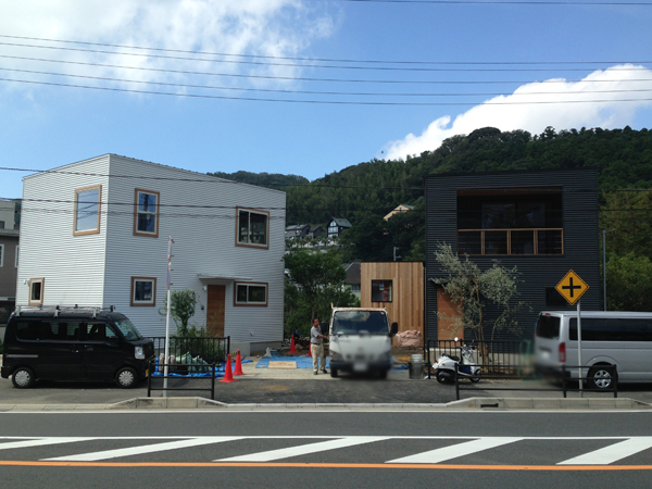 夏の終わりに差し掛かる頃、葉山町長柄のヴィレッジでは、道路側の2棟のスケルトンハウスがそろそろ完成を迎えようとしています。