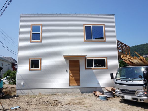 通常のスケルトンハウスでは、レッドシダーなどの木を外壁に使っていますが、カジュアルではガルバリウム鋼板を使用しています。