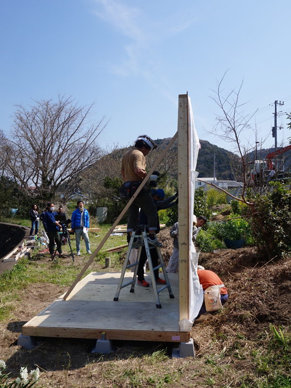 東涌宏和さんに小屋のパーツや組み立てる様子を撮影してもらうことになりました。
