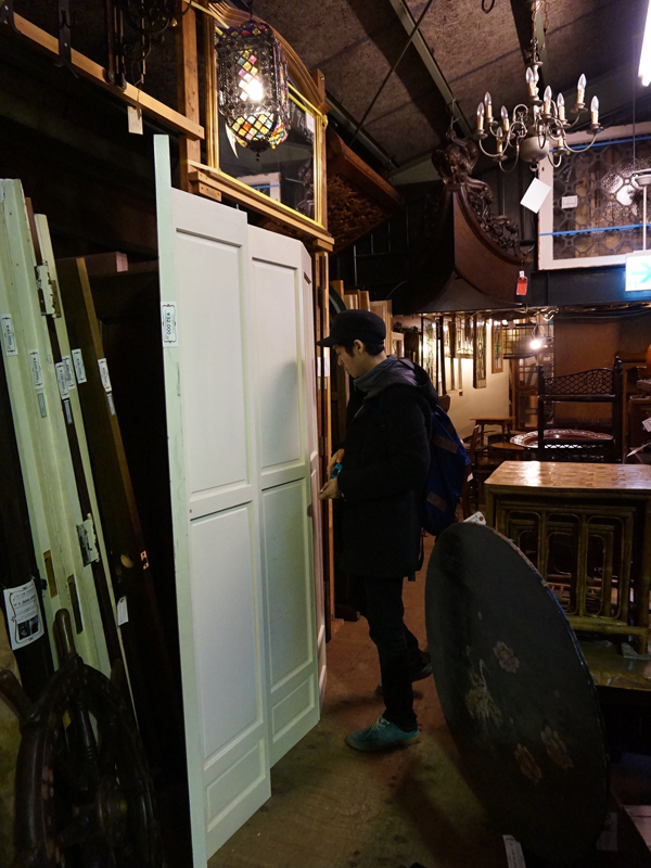 大きな倉庫いっぱいに詰め込まれた無数の建具、ステンドグラス、椅子やソファやテーブル、戸棚、ランプ、ミラー、洗面台、バスタブ、食器や小物に至るまで、数え切れないヴィンテージあるいはアンティークの品々の中から、家のアクセントとなる逸品を掘り出します。まさに目利きの世界。