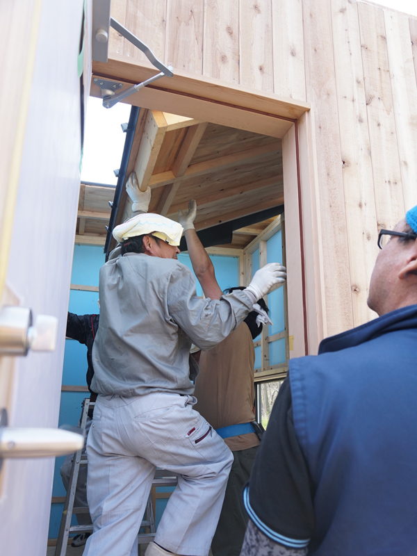 セルフビルド可能と言っても、壁1枚がゆうに背丈を越えるため1人ではちょっと無理。できれば仲間にプロの大工さんを加えることをおすすめします。