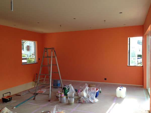 そうして塗り終わった広いリビングの壁は、サンタフェのようなサーモンピンク!カラッとしたメキシコの熱い太陽を彷彿とさせ、気分が明るくなりますね!