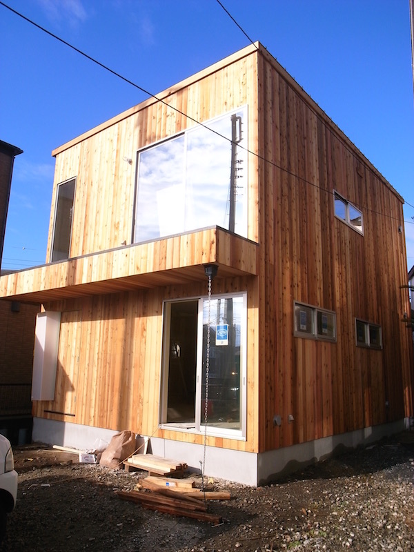 無事に建て方を終えた堀内ヴィレッジA棟では、外壁にレッドシダーが貼られています。