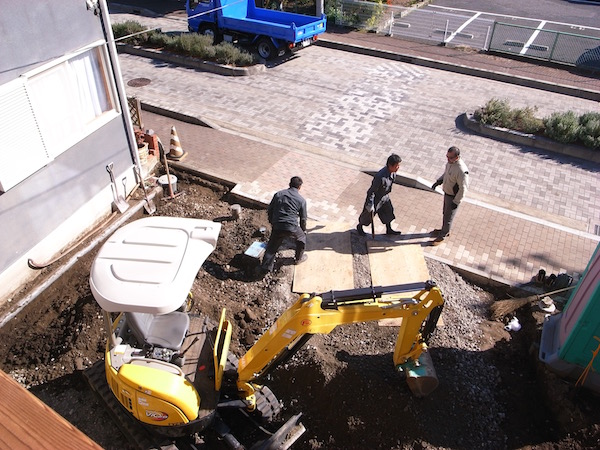 月上旬の完成内覧会に向けて、追い上げムードの堀内A棟。いよいよ外構も始まりました。