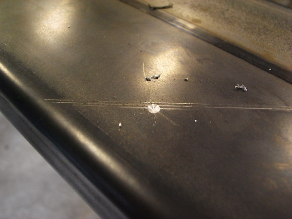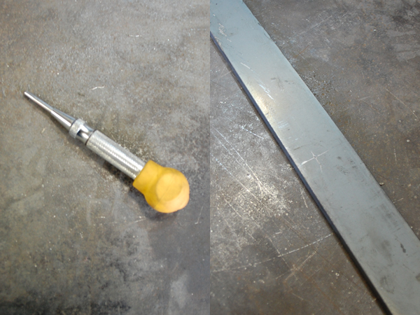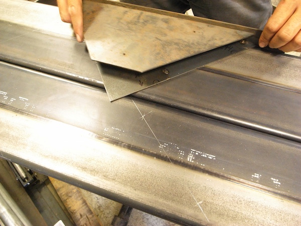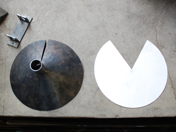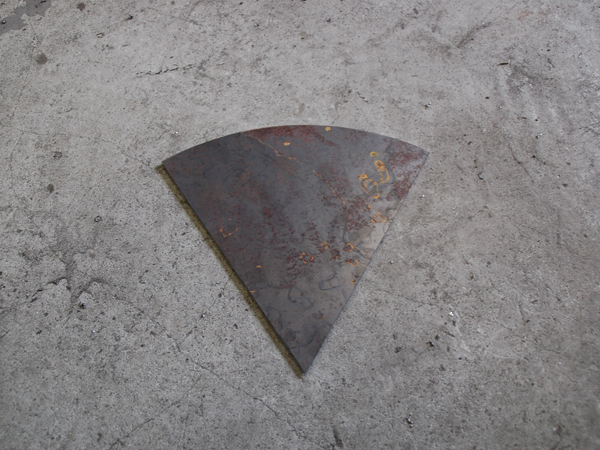 1枚の平らな鉄板に型紙を当てて、この形に切り出します。