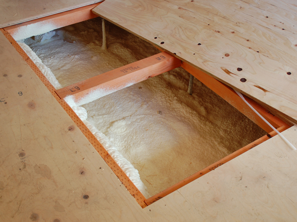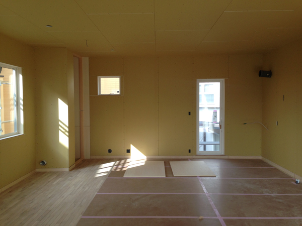 さて、建物の中では、床下や壁の中に断熱が施されています。スケルトンハウスでは断熱を重要視していて、かなりたっぷりと断熱を施します。建物全体の保温性・遮熱性を高め、冷暖房の効率を良くするためです。