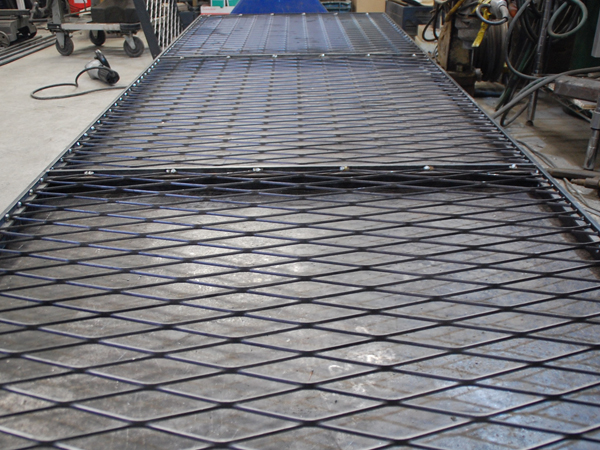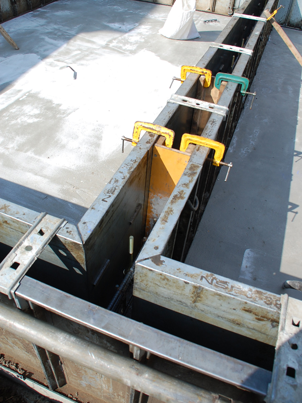 均等な幅になるように固定された枠組み。この中にコンクリートを流し込みます。