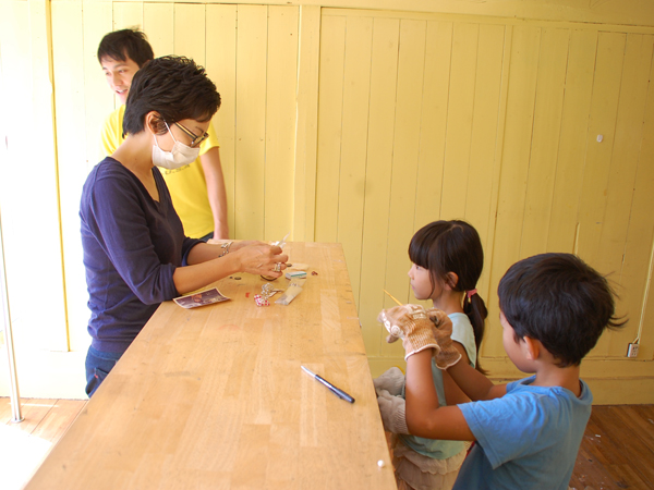 そんな味のあるこの古家を、いろいろと調べ検討した結果、建物として生かすことはできないと分かった時、私たちはとても残念な気持ちでした。せめて違った形でこの古家のエッセンスを生かしたいと、建物の解体の時にはワークショップを催し、一般のお客様に建具や小物などを取り外してお持ち帰りいただいたりもしました。