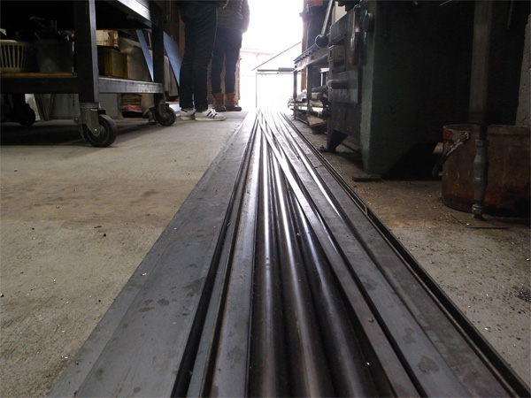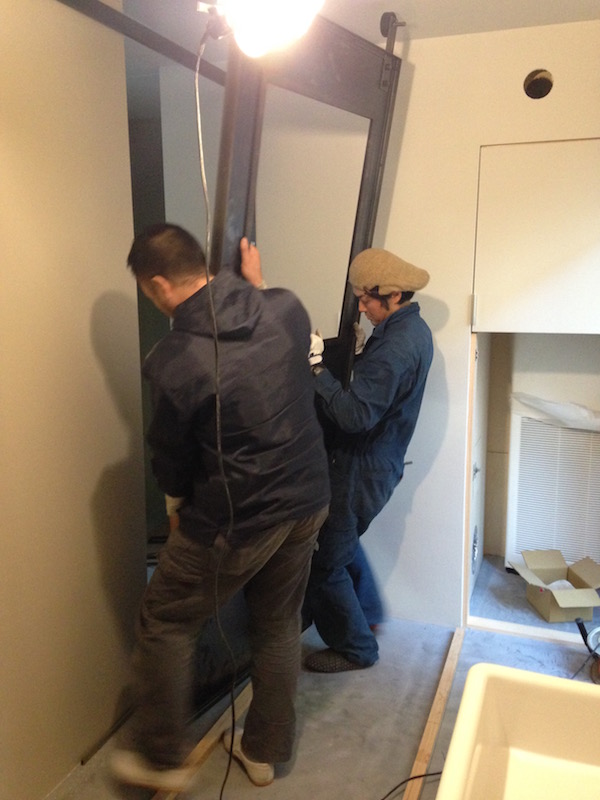 ついに鉄の引き戸がレールに乗っかりました!