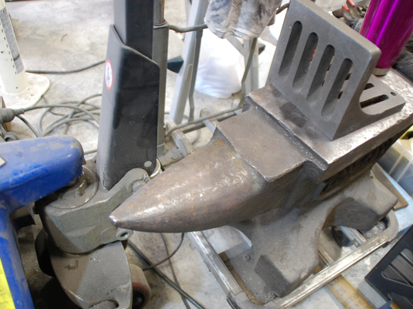 これは「アンビル」という道具。ランプシェードの継ぎ目の部分など、砂袋では十分に整形の支えができない箇所は、この先端のRに対象物を当てて叩き、形作っていくそうです。