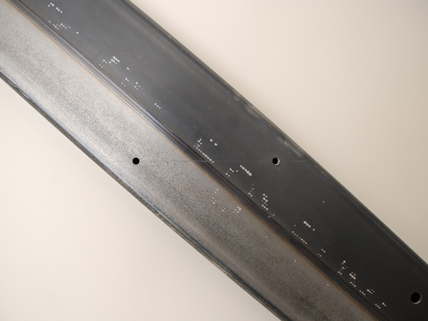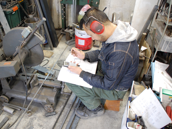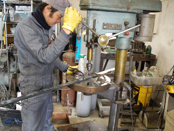 まずは引き戸が閉まった時に当たる部分に、鉄柱を取り付けます。予め工房で寸法を測って切断してきていますが、実際の現場で当ててみると、若干の補正が必要なこともあります。今回も数ミリですが、現場で火花を散らしながら削って、無事におさまりました。