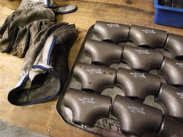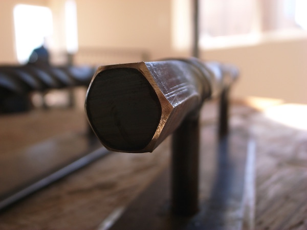 元は六角形の鉄の棒を、バーナーで部分的に真っ赤に熱し、柔らかくなったところで捻って整形していくそうです。
