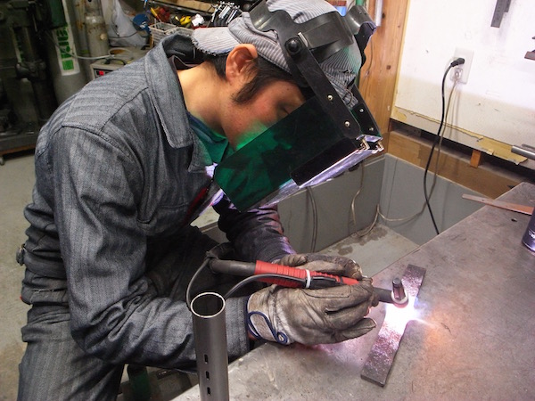 一方、堀場さんは、主に溶接によって作品を作ります。もともとアパレル業界でファッションの仕事をしていた堀場さんは、展示会や店舗で洋服をもっとかっこよく見せられる什器が欲しいと常々感じていました。そしてある日「無いなら自分で作ろう」と思い立ち、鉄でハンガーラックなどを作り始めたのがこの道に入ったきっかけ、という変わり種です。