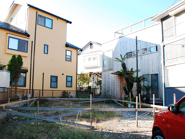 堀内ヴィレッジは、ちょうど「J」の字を逆さにしたようなユニークな地形。B棟はもちろんですが、A棟もあえて敷地の奥に寄せて建て、道路に面した前を広く開けています。ここは2棟分の駐車スペースとなることはもちろん、もともとこの地にシルバーアクセサリーの可愛らしいショップがあったという事実が示す通り、店舗も営業できる好立地を踏まえて、たとえば家前のスペースにバルコニーからタープを張ってテラス席を作ったりもできるようにと考えてのことです。