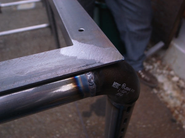 足場板に対して鉄パイプが細めなのと、角の部分にRが付いているので、いかつくなり過ぎていないのが良いですね!