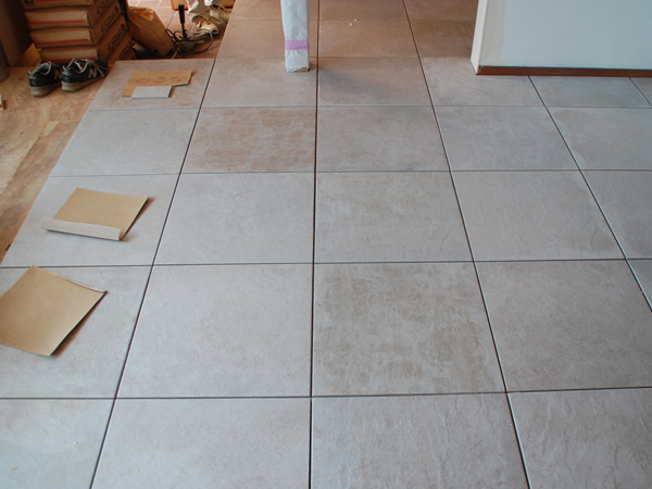 1階の玄関やキッチンから一続きになった大空間の床には、なんと全面にタイルが貼られるようです!