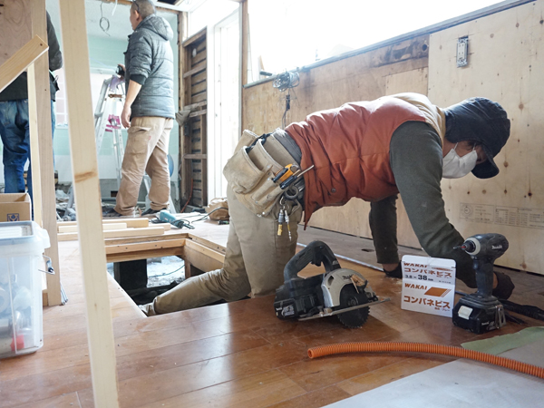 この家は、日当りも風通しも良い場所にあり、歴代のオーナーたちが大事に手入れをしながら住んできたため、建物の状態は良好でした。そのおかげで大規模な基礎工事や躯体の大掛かりな立て直しなどは必要なく、室内の工事に比較的早い段階から取りかかることができました。