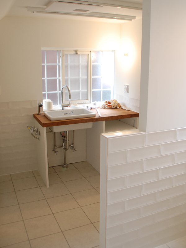 小ぶりの可愛らしいシンクがセットされた洗面台もCALLACさんが作りました。