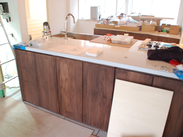 家の真ん中にあるアイランドキッチンにも扉が付きました。