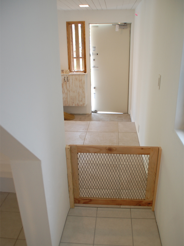 玄関に通じる通路には、愛犬たちが飛び出していかないように、可愛らしい扉も取り付けられ、Rさんも愛犬たちも、安心してのびのびと暮らせる家が出来上がりました。