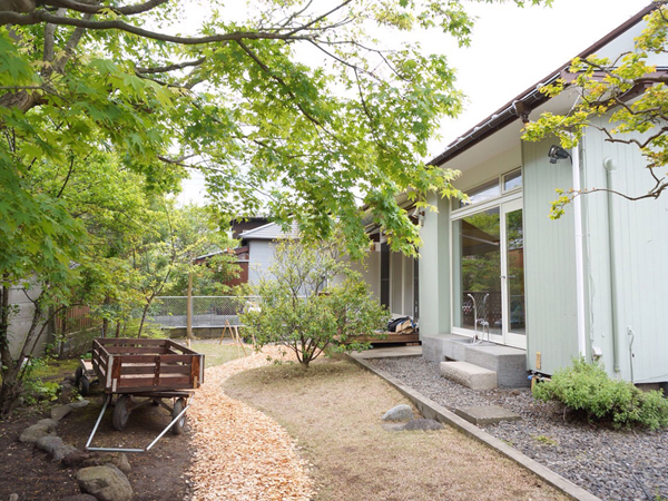 小径の奥にそっと佇む広い庭つきのこの可愛らしい古家は、施主Rさんとその家族である4匹の愛犬たちが住む予定。