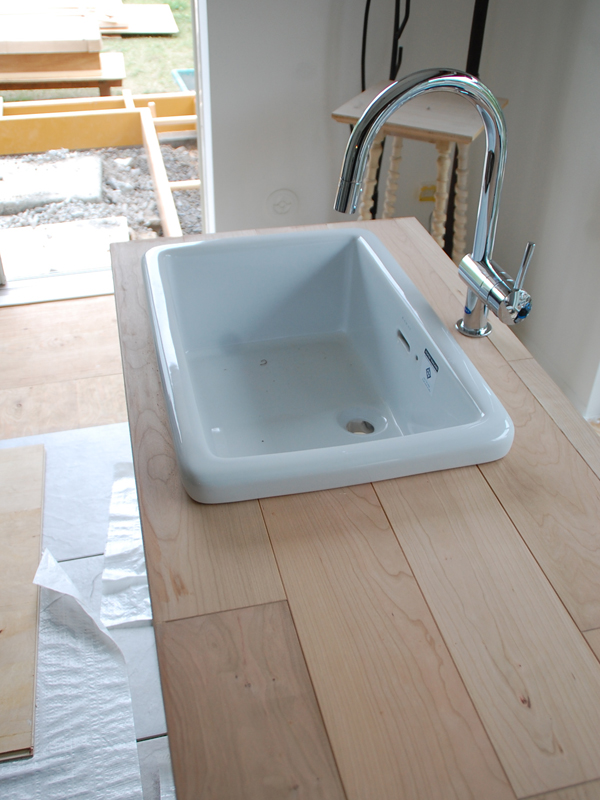 可愛らしいシンクがセットされていた洗面台も、家の中に収まりました。