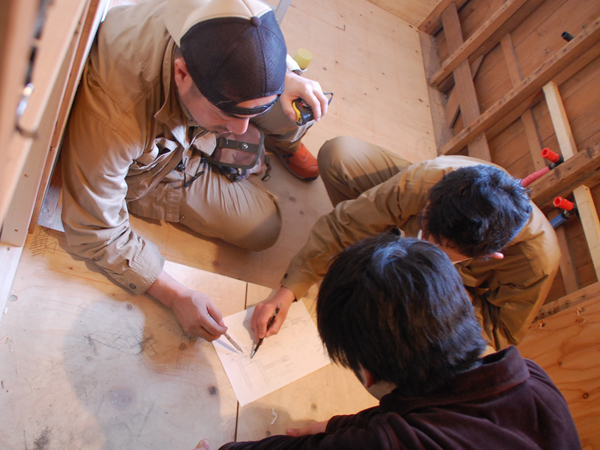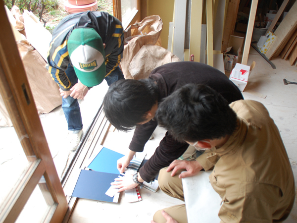 お施主Kさんも現場に立ち会っていただきながら、仕上げのディテールも決定していきます。