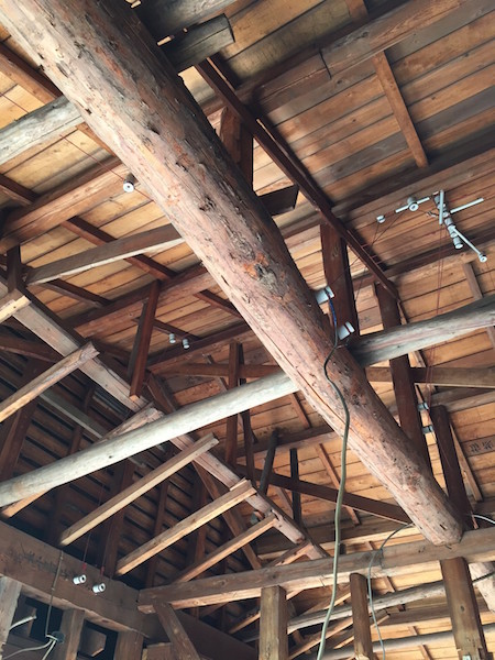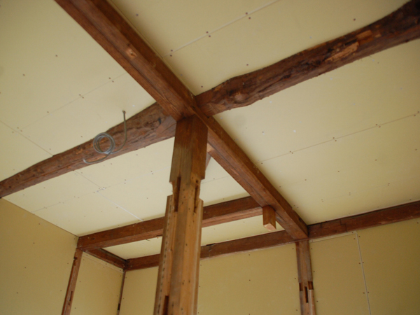 天井を見上げると、そこも同じように、古い梁が天井ボードから見えていました!
