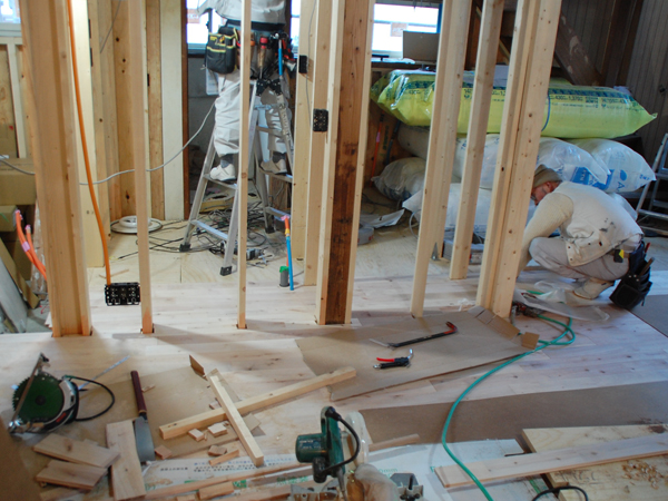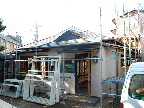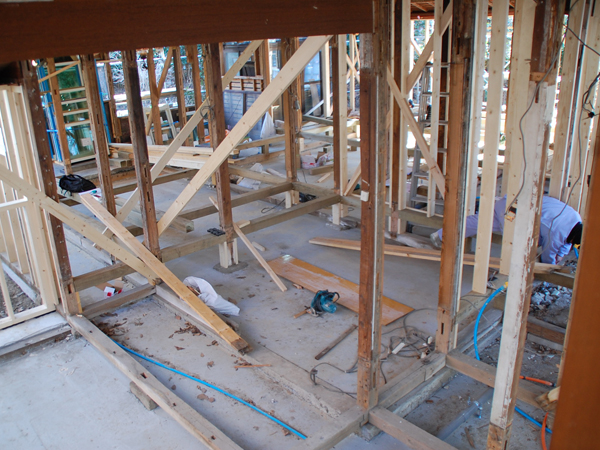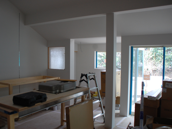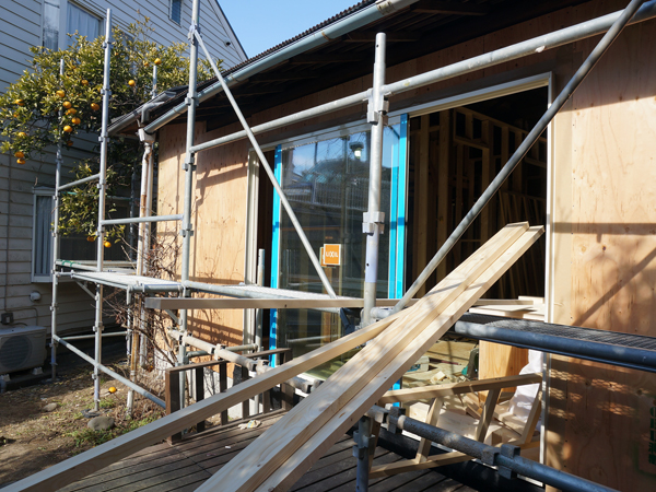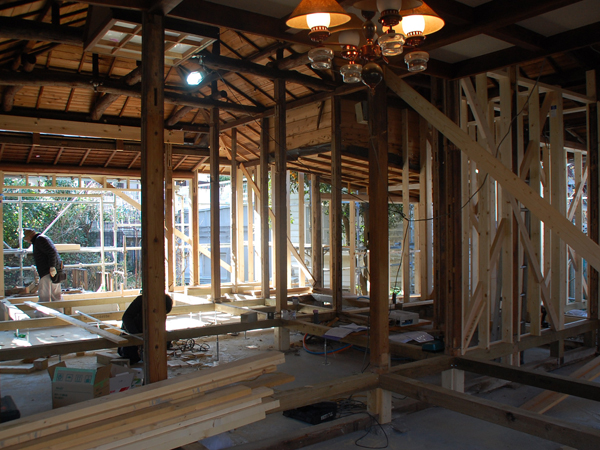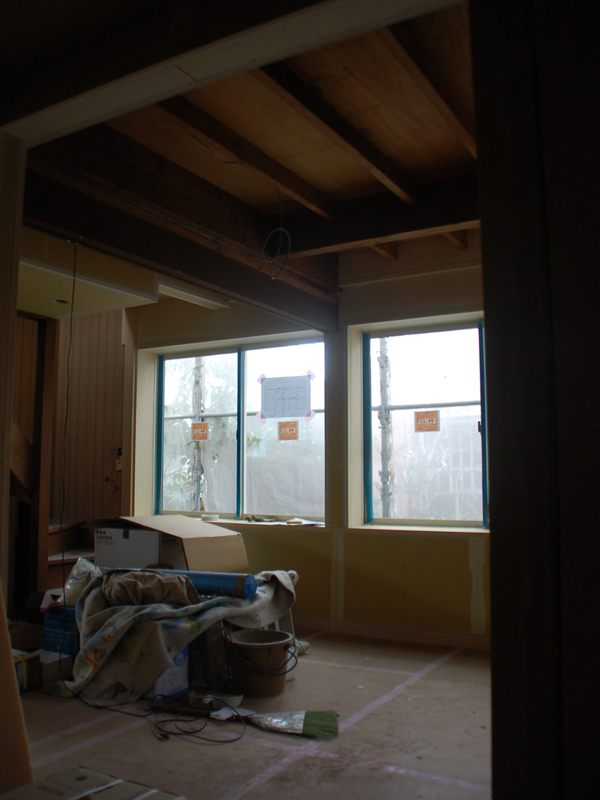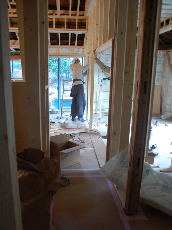 逗子の桜山で、古家を2世帯住宅にリノベーション中のOさんご一家。念入りな躯体の補強工事も無事に完了し、現在は仕上げに向けて内装工事が急ピッチで進められています。