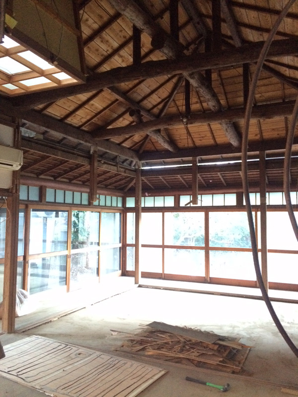 平屋部分の天井を取り払い、小屋裏が現れました。