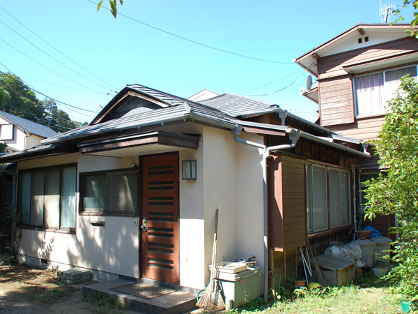 逗子の田越川のほとりで、元は平屋だった建物に2階建ての建物が増築された古い家を、父世帯&息子世帯の2世帯住居へとリノベーションしております。