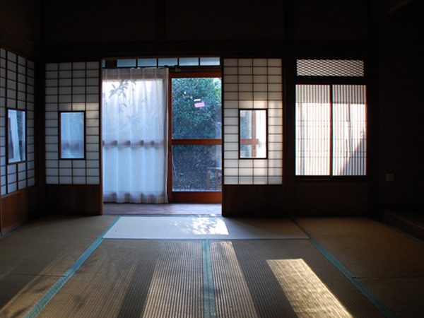中に入ってみると、元々の平屋の部分はこんな感じ。床の間のある座敷を囲むように縁側があり、日本の伝統的な和室のしつらいそのものです。古い建具の格子や細工は、時を経た今でも狂いなく整然としていて、古き良き時代の日本のものづくりのレベルの高さを伺わせます。