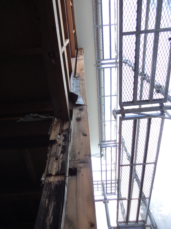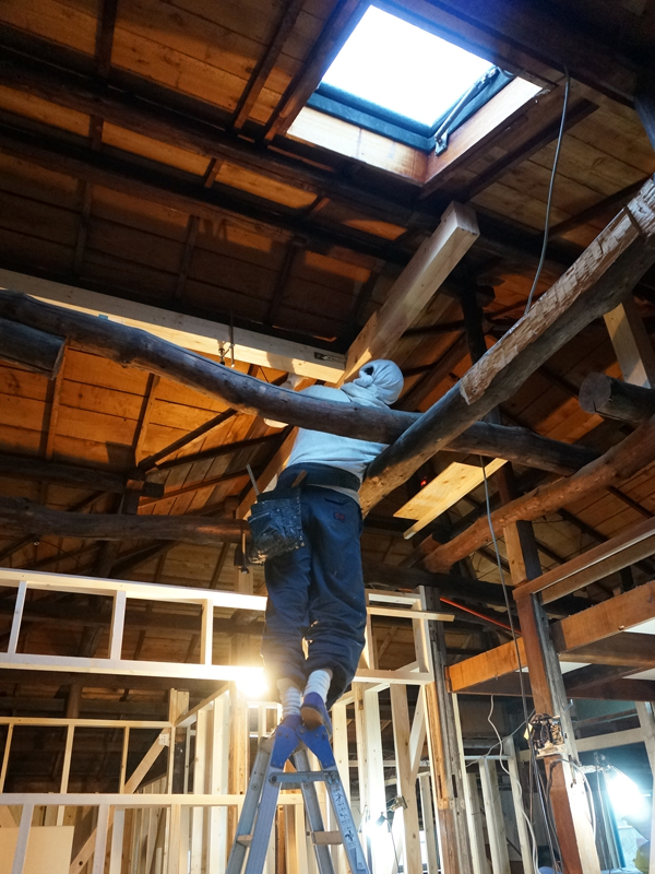 一方、天窓のある小屋裏付近でも、補強工事が始まりました。
