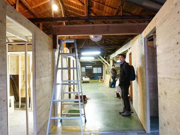 工場の躯体はそのまま活かし、ガランとした工場の中に新たに仕切りを設けて、17個のブースと共用部からなるシェアスペースへと生まれ変わらせる予定です。