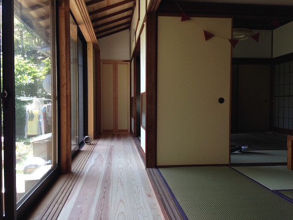 南側の美しい庭に面した縁側の床板も、無垢の材で貼り直され、端正な表情になりました。