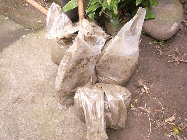 この土を水で溶いて、刻んだ藁を混ぜ、よーく練って土壁の土を作ります。それだけでも大変な作業。