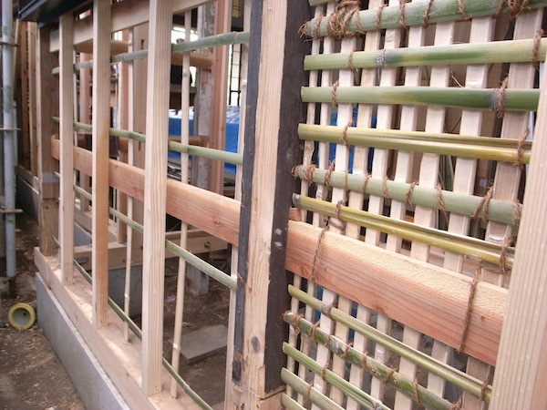 新しい壁には、オーナーが自ら山へ採りに行った竹を編んでそこに土や漆喰を付けていくそうです。