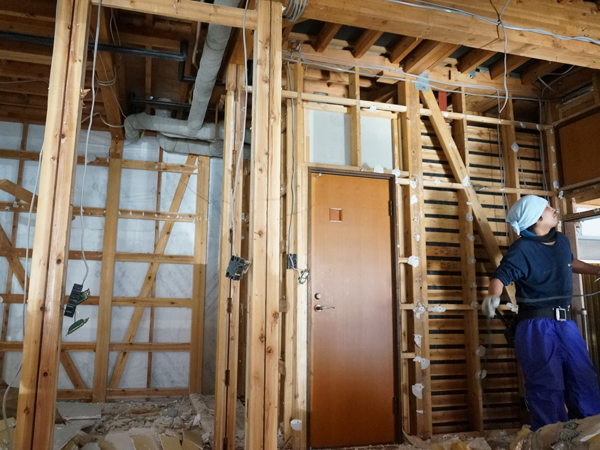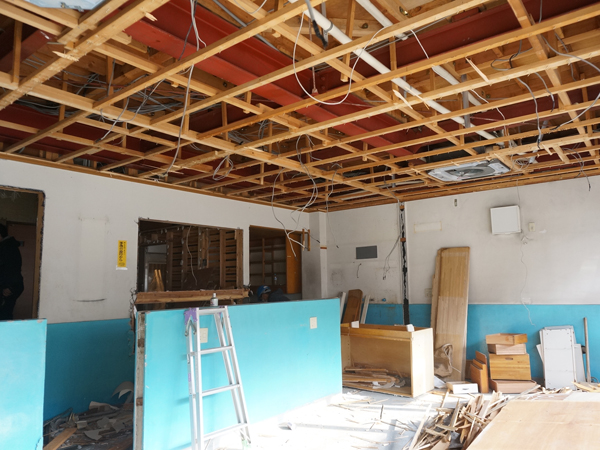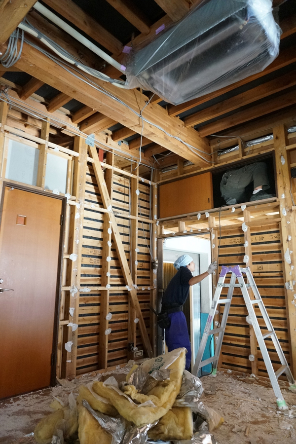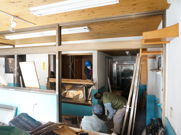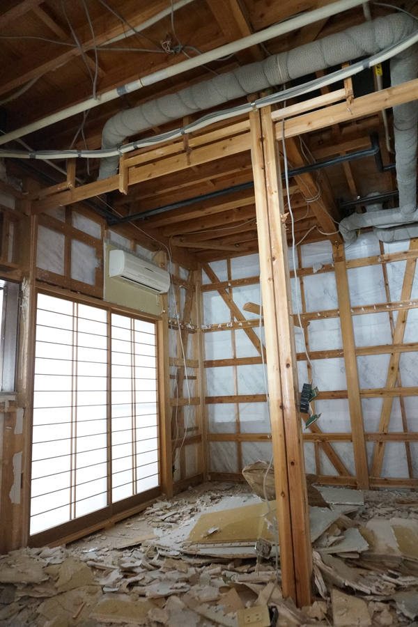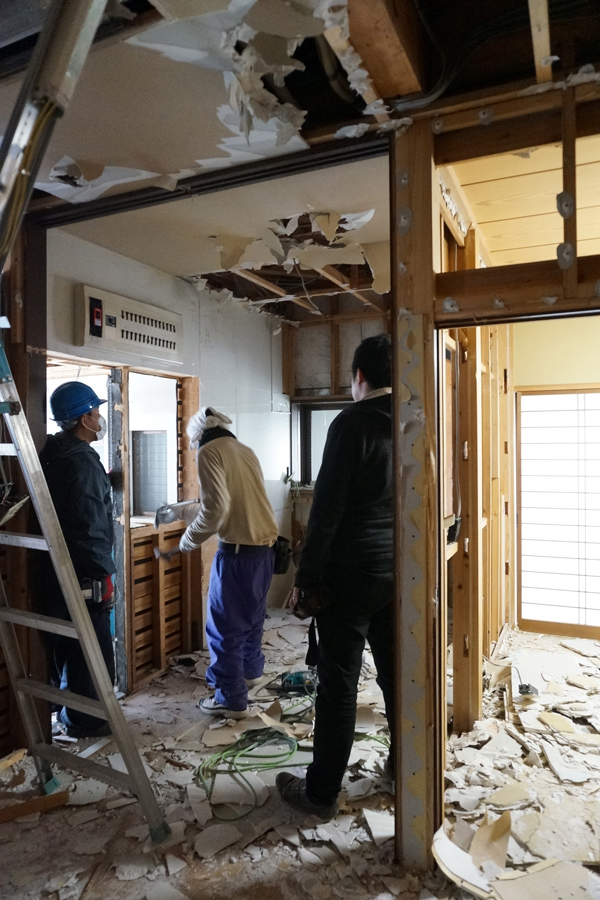 年明けは解体からスタート!壁を取っ払い、サッシと天井を抜き、スケルトン状態に戻します。