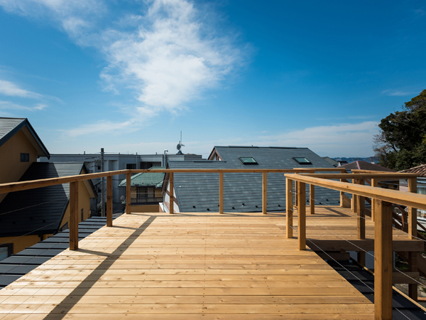 今回は、一般参加者による古家解体ワークショップから始まり、樹齢200歳を越えるソテツの移植、DIYスタイリスト石井佳苗さんによる古家の建具を生かしたノスタルジックかつ洗練された印象の内装(インフィル)、海も山も見渡せる大胆なルーフバルコニーと、この土地の歴史や立地を最大限に生かした家へと仕上がりました。