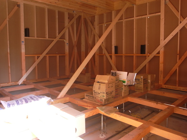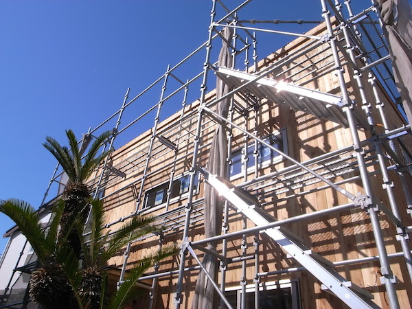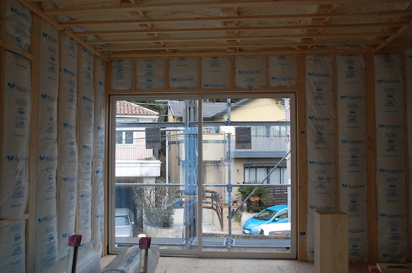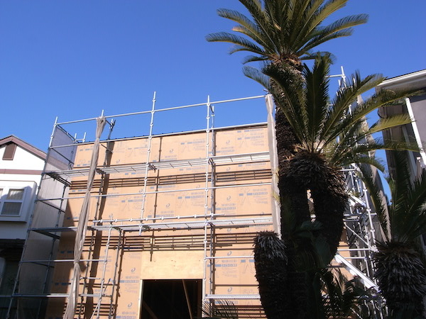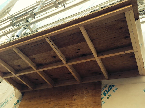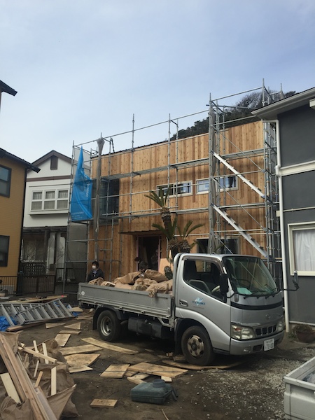 葉山の堀内ヴィレッジでは、スケルトンハウスの外壁も張り終え、躯体(スケルトン)部分はほぼ完成。いよいよ内装(インフィル)部分がピッチを上げて進んでおります。