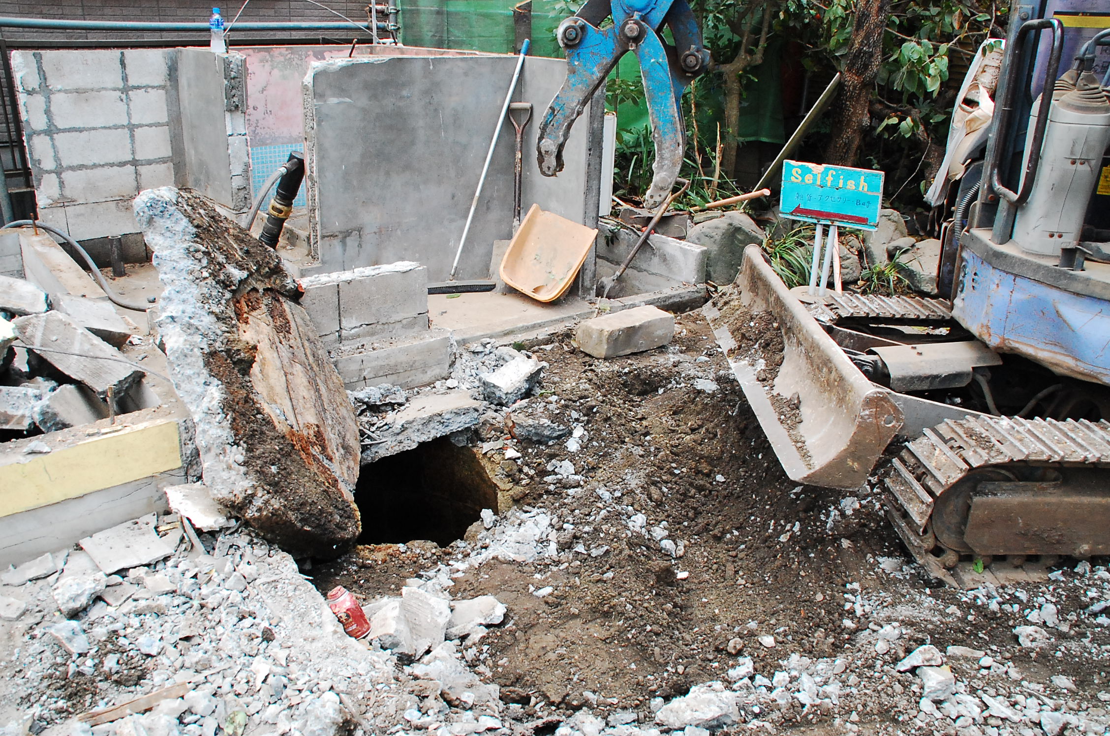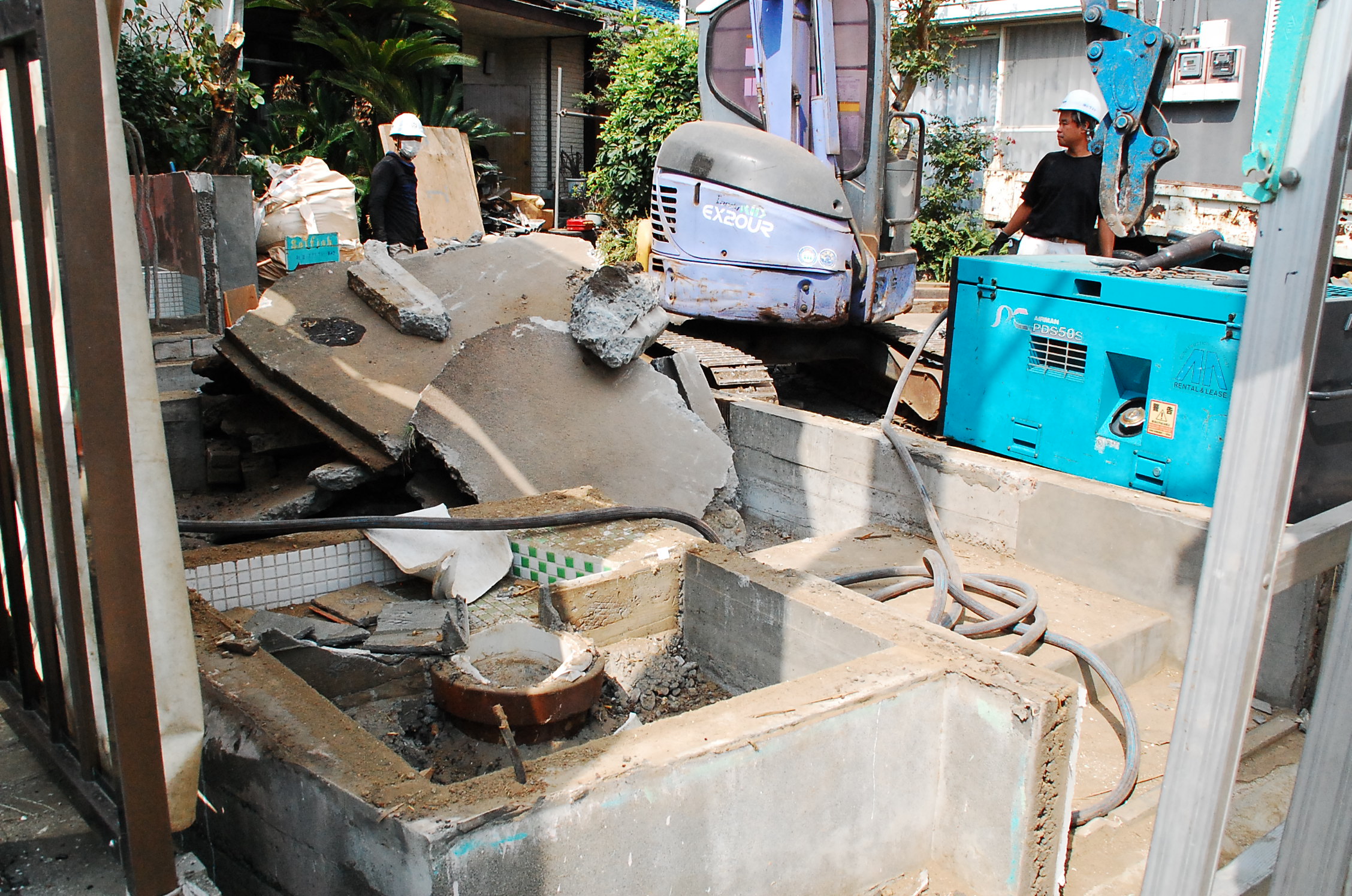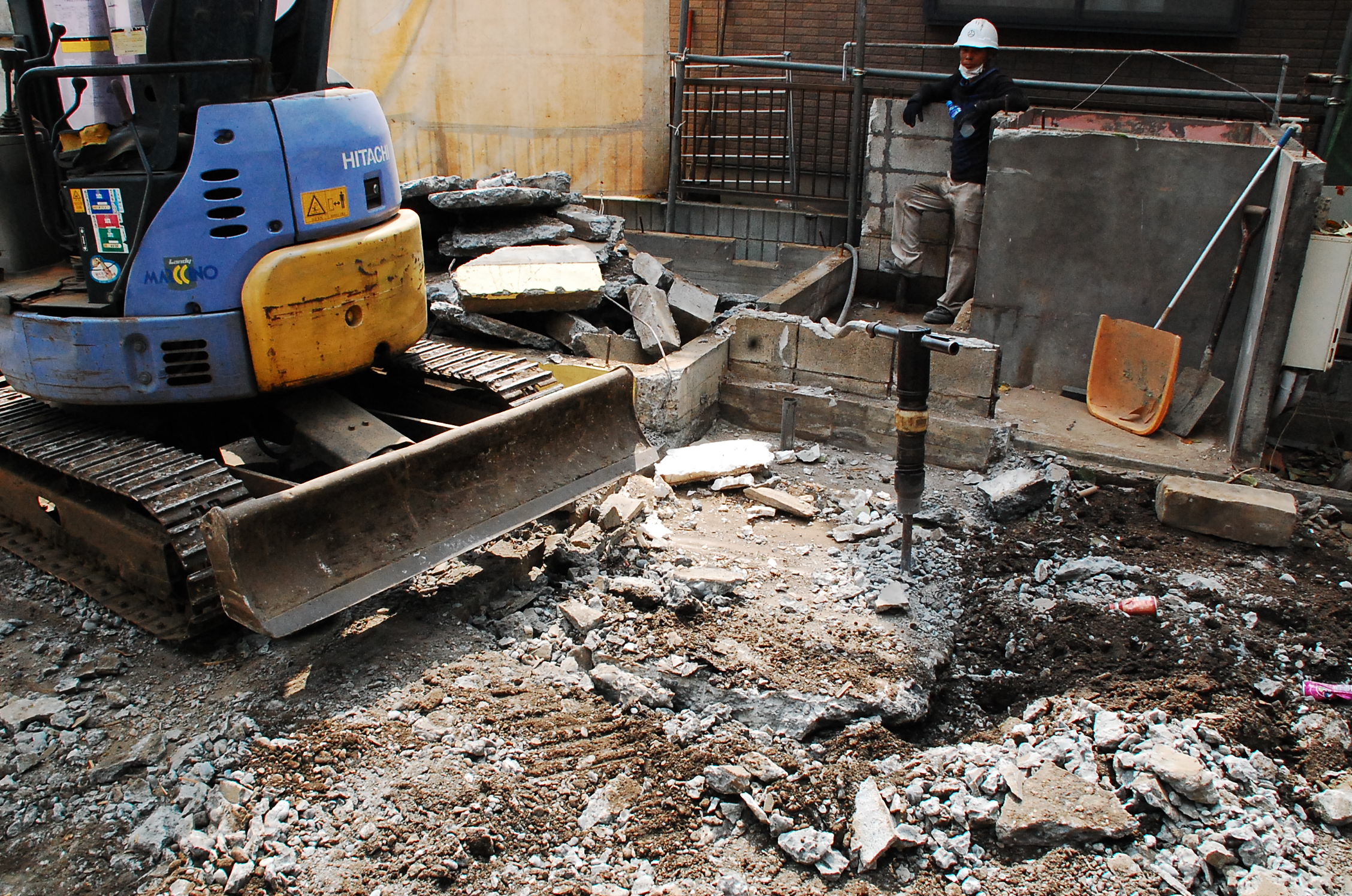 次なる工程「試掘」に向けて、コンクリートを剥がし地面を剥き出しにしていきます。