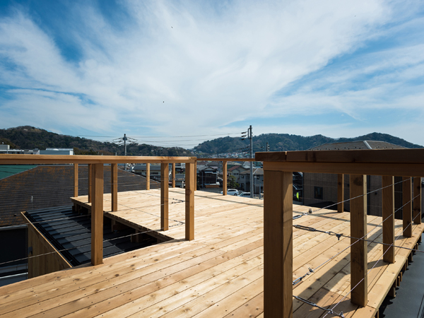 美しい山のビューも得られます。360°の眺望を楽しめる広いルーフバルコニーは、この家のもう一つのリビング。