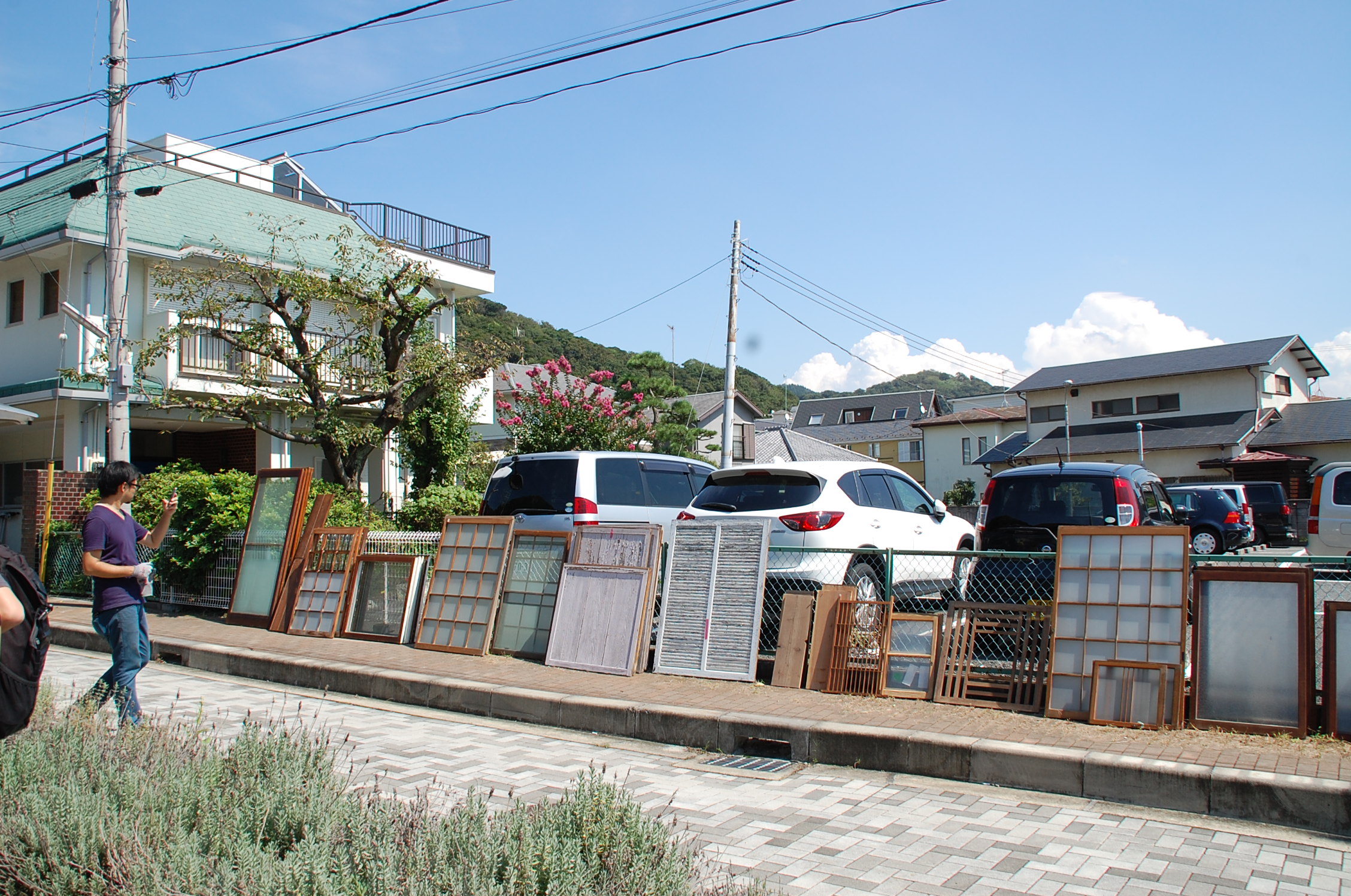 まずは葉山の潮風に洗われてイイ味出まくりの建具を一つずつ外して運び出します。